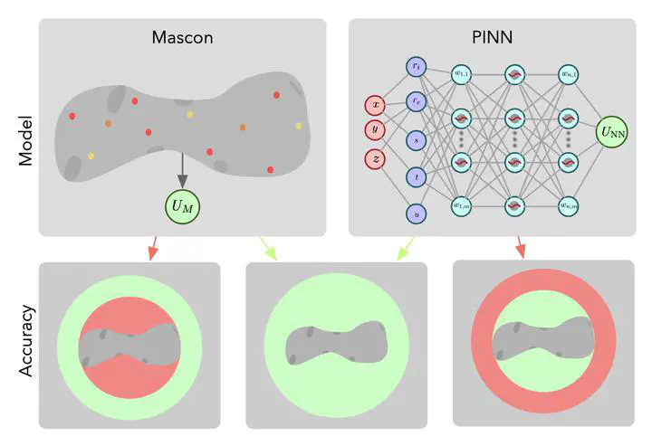 Accurate gravity field modeling for irregular and heterogeneous density bodies, such as asteroids, presents significant challenges. The inhomogeneous gravity field plays a crucial role in spacecraft dynamics, particularly when orbiting in low-to-medium altitudes around these bodies. To achieve a precise gravity field solution, this paper explores the fusion of mascon and physics-informed neural network (PINN) gravity models. The mascon model is a classical approach that discretizes the body into a finite number of mass elements. Conversely, the PINN model uses a deep neural network to map position coordinates into a gravitational potential, and an acceleration can be evaluated via auto-differentiation of the net- work. This work trains the mascon-PINN model in two stages using a position- gravity dataset. In the first stage, only the mascon distribution is regressed and then is held constant during the subsequent stage. In the second stage, the re- gressed mascon model is combined with a weighted PINN, where only the neural network is trained to refine the gravity solution. The mascon-PINN model effec- tively merges the mascon stability at high altitudes with the high accuracy of the PINNs at low altitudes. The performance of the mascon-PINN model is evaluated using test cases for the asteroid 433 Eros, with a focus on orbital applications.